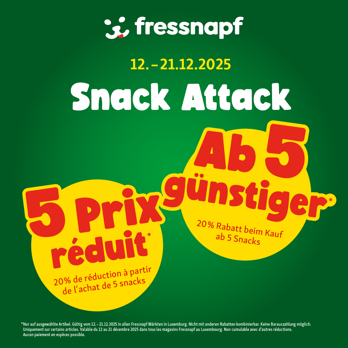 20 % Rabatt beim Kauf ab 5 Snacks.