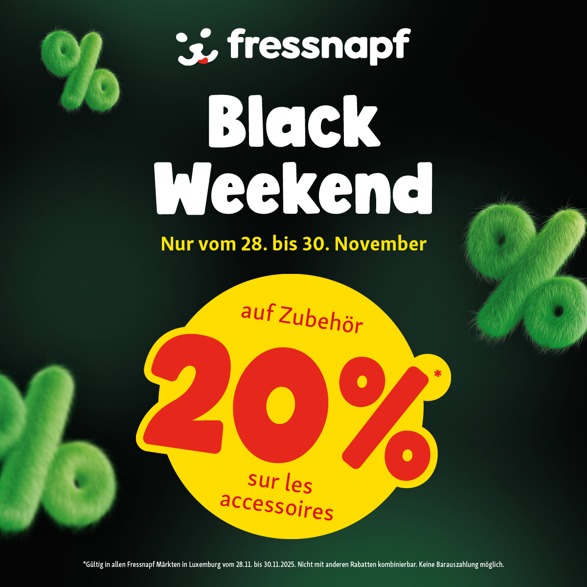 Von Freitag bis Sonntag* gibt es 20 % auf alles Zubehör inklusive Katzenstreu :)